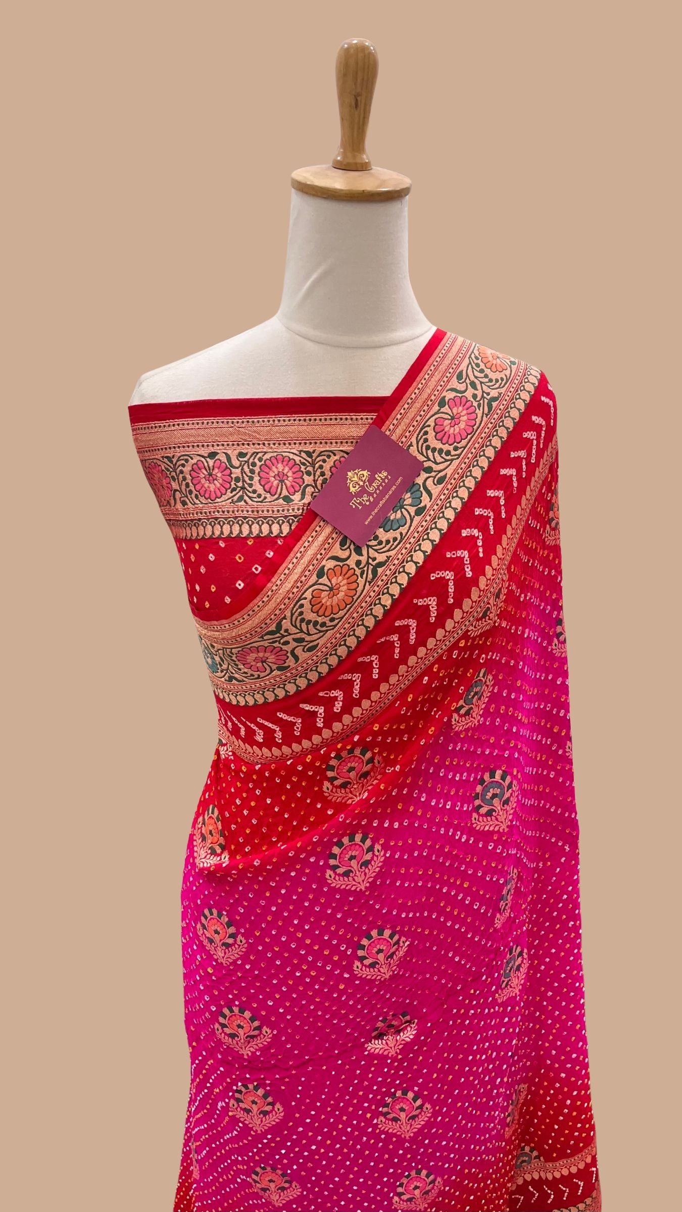 • Color - A beautiful shade of pink and red bandhani
