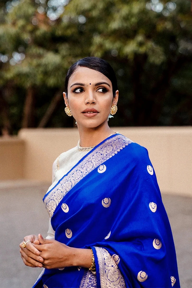 • Color : A stunning royal blue katan silk