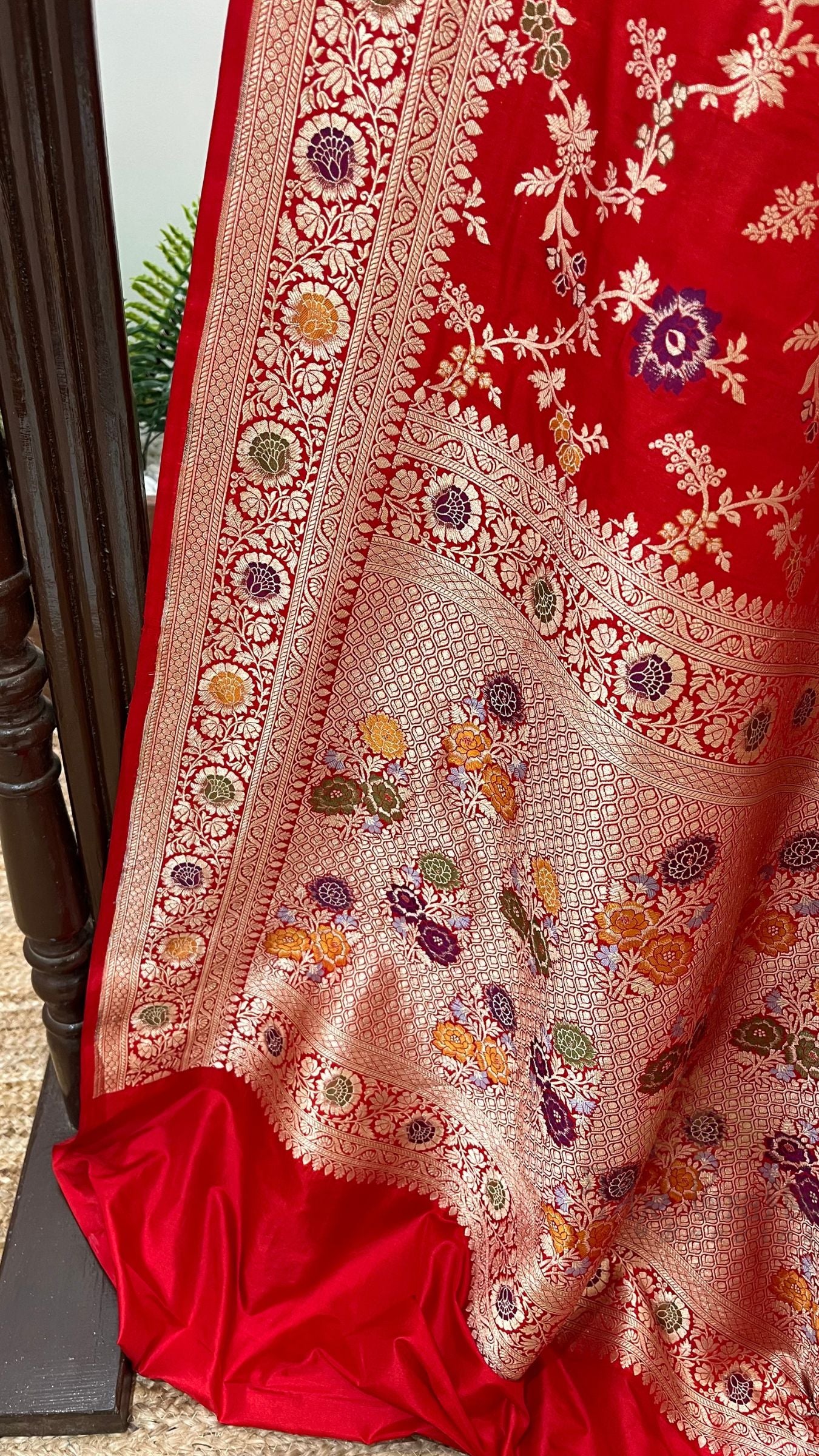 - Technique- Classic handwoven Banarasi Jangla art passed down through generations of weavers
