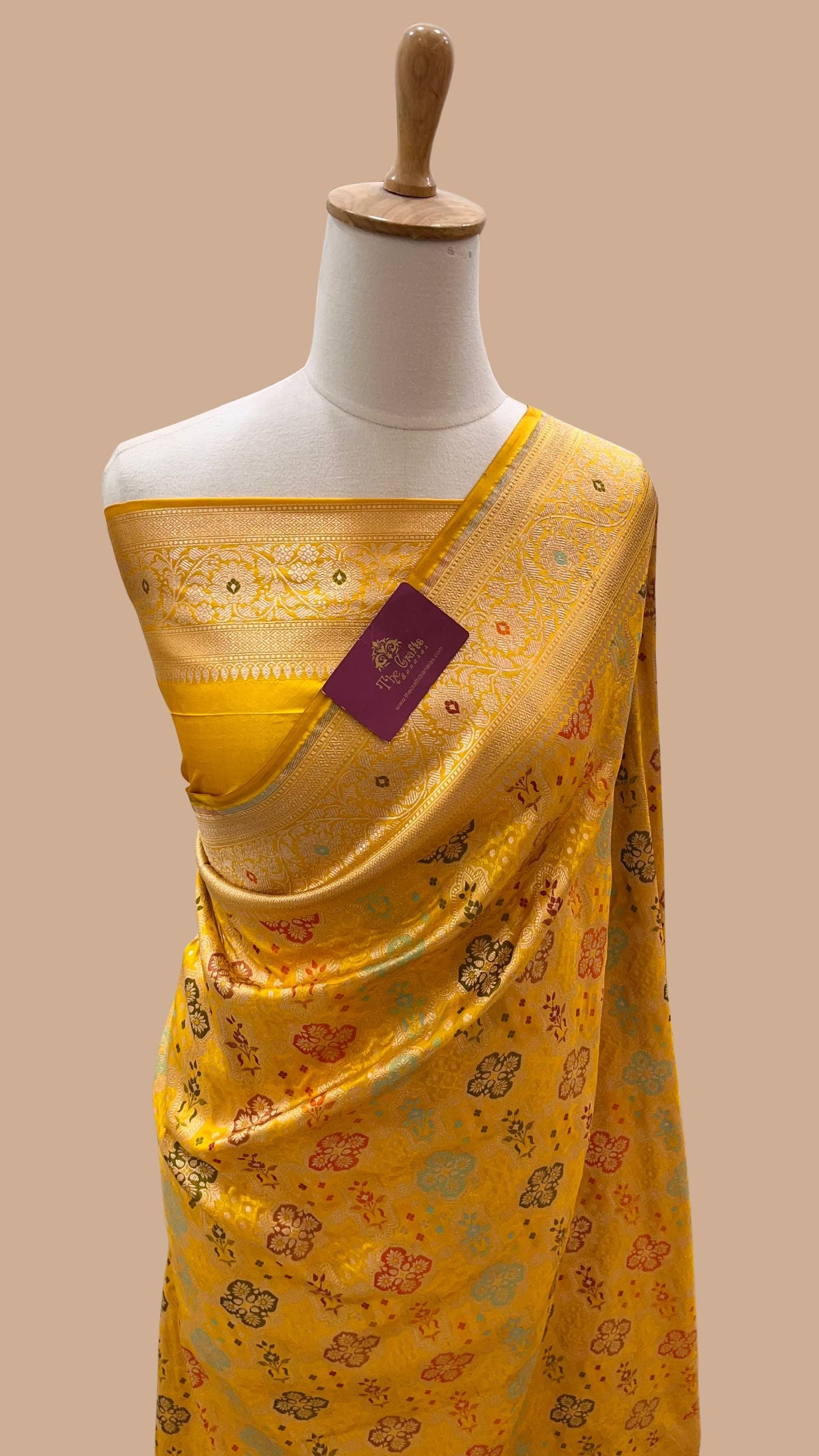• Speciality - A gorgeous katan silk body with an intricate floral border and body in roopa sona zari and the exquisite kadhua weave. Exuding effortless elegance!